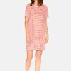 Robe de nuit t-shirt viscose et coton marinière rouge