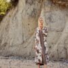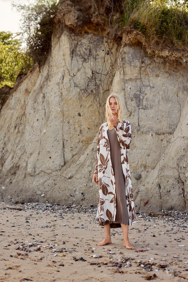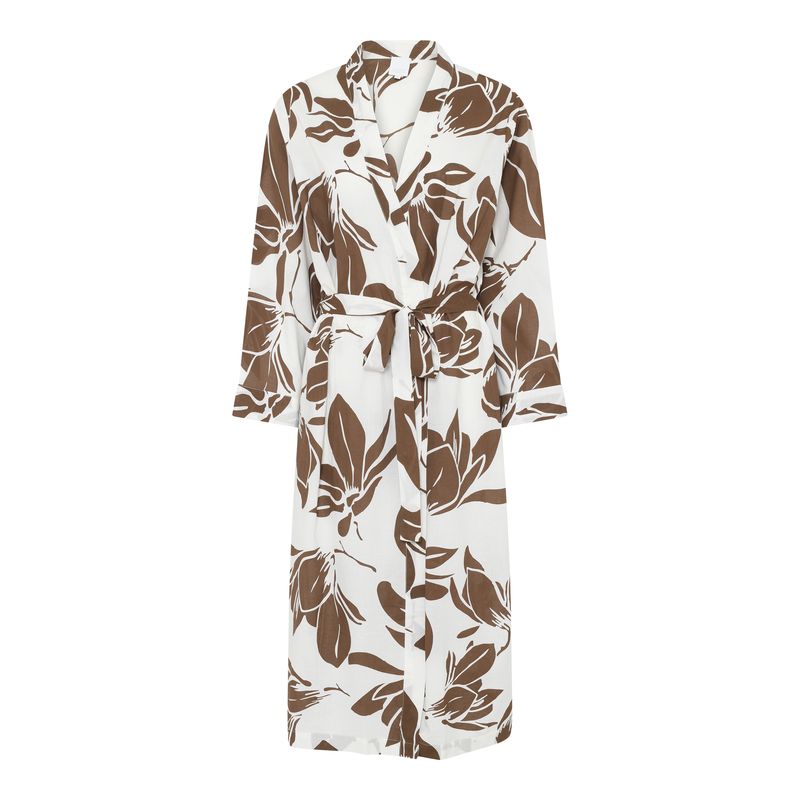 Peignoir/ Kimono 100% coton imprimé blanc et moka
