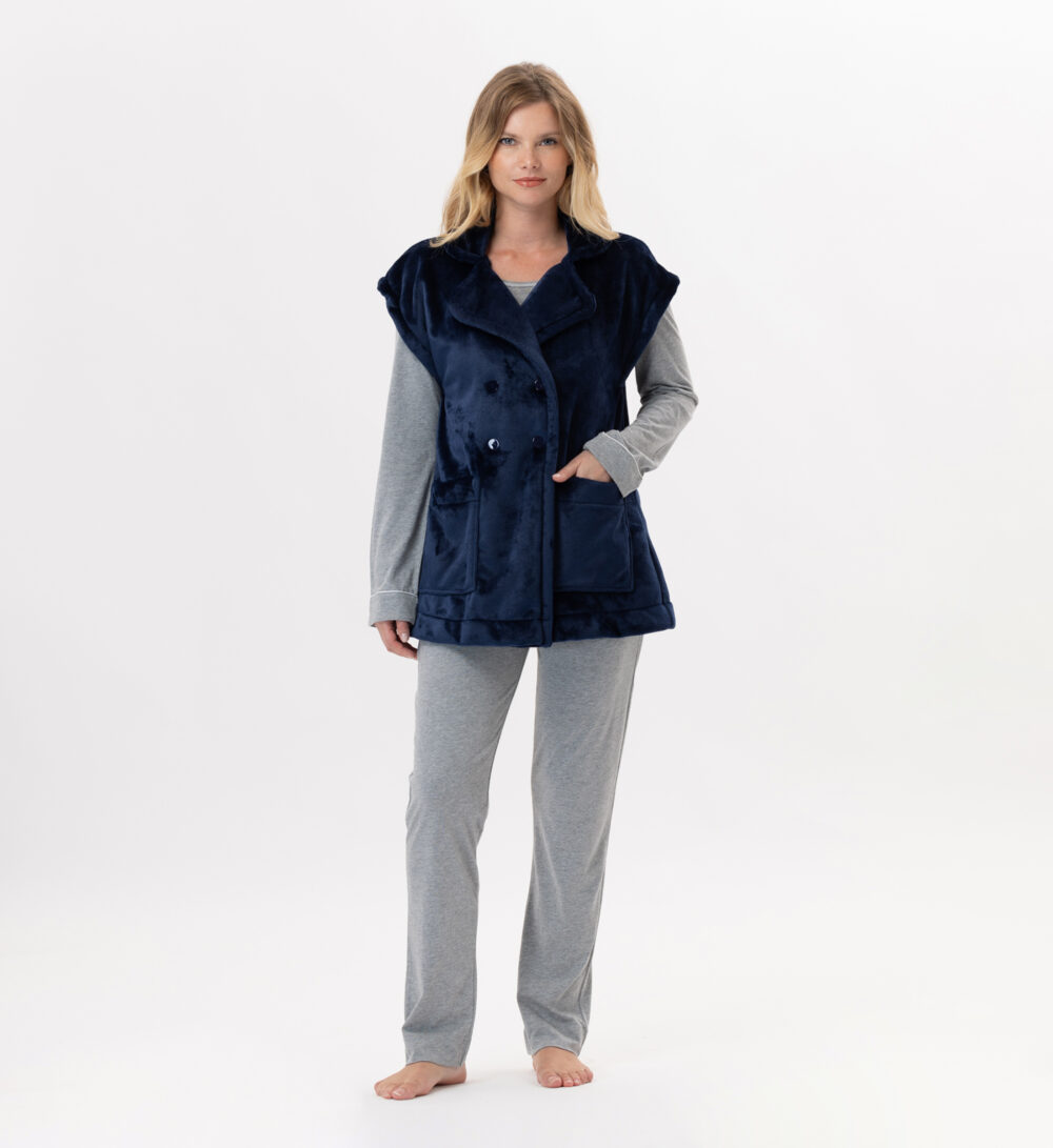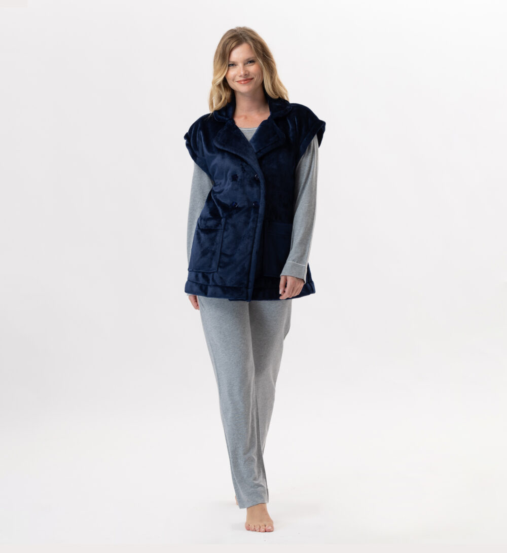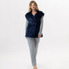Veste manches courtes boutonnée en peluche flanelle bleu marine