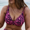 Bikini rembourré décolleté plongeant Hot pink zebra